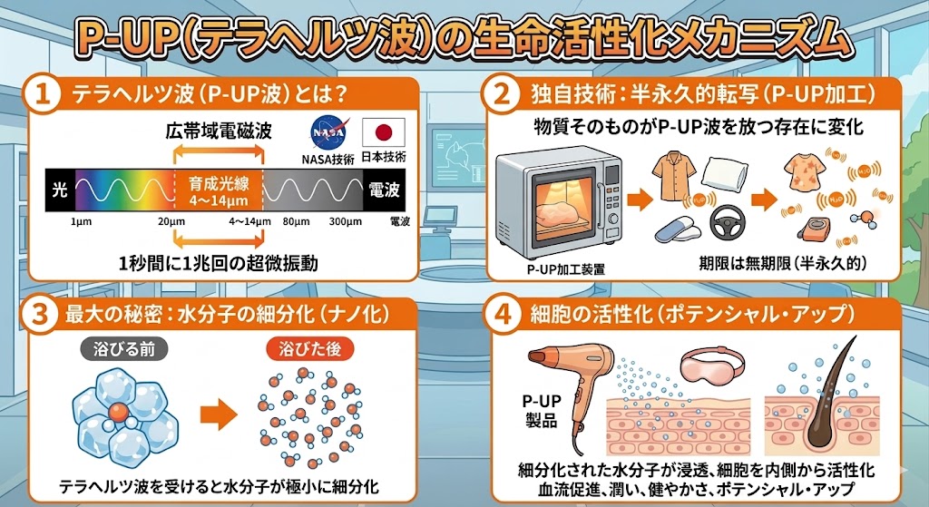最も健康な人が発する電磁波(テラヘルツ波)は生命光線とも育成光線とも呼ばれています。超美振動P-UP波とは、最もこのテラヘルツ波帯に近い電磁波です。